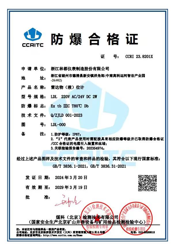 雷達物(液)位計防爆合格證